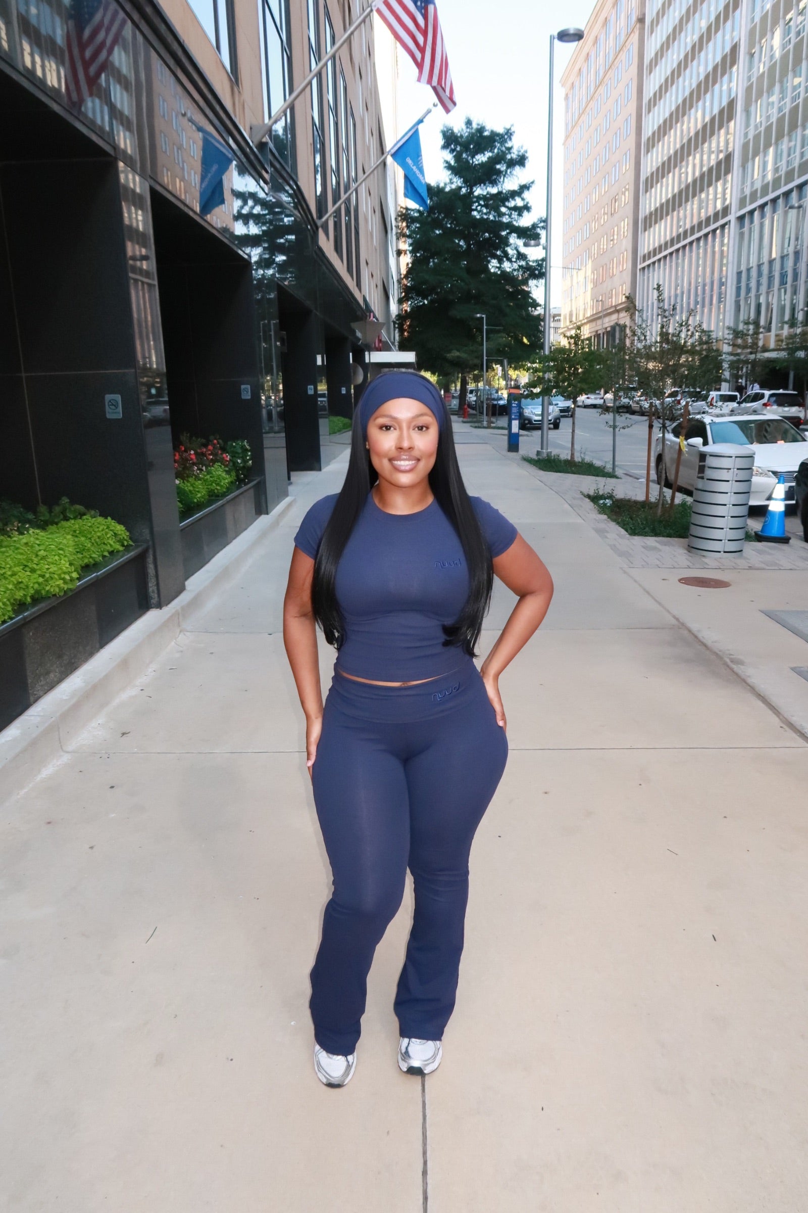 The ultimate 3-piece set for comfort and confidence. Featuring yoga fold-over waistband pants, a sleek short sleeve top, and a matching logo headband, this look is made to move with you. Perfect for lounging, errands, or serving effortless baddie energy on the go.